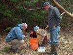 Harper Creek flows directly behind Frank VanHorssen's Fortye Drive home. Frank stopped by the project site to see what our project was all about on Friday, and then generously spent his afternoon helping install logs and prepare the site for planting. Just as we got started Saturday morning, Frank appeared with his wheel barrow, set to dig in for another day. It was wonderful to have a creekside resident so enthusiastic about remediating the stream and we really appreciated his help and local knowledge. (Photo by Kim Zippel).
