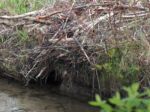As the creek substrate changes from heavy sediment to a more coarsely pebbled bottom, the green frog (Rana clamitans) population will benefit as the predominately worm based benthic population diversifies to include a wider variety of invertebrates, and hence prey species, for tadpoles and adults alike. Newly planted shrubs will also attract terrestrial species such as spiders, caterpillars, butterflies and moths that will be of particular interest to adults, such as the little green frog above, who emerged from hiding shortly after volunteers left for the day. (Photo by Kim Zippel)