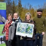 Michelle Young prepares a spot for a Speckled Alder, one of the larger specimens to be planted near the Pinewood Drive reach of Harper Creek. (Photo by Kim Zippel)
